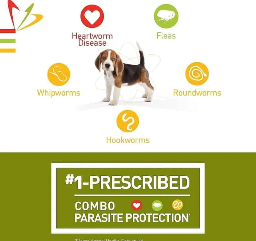 Protects against fleas, heartworm disease, hookworm, roundworm and whipworm.