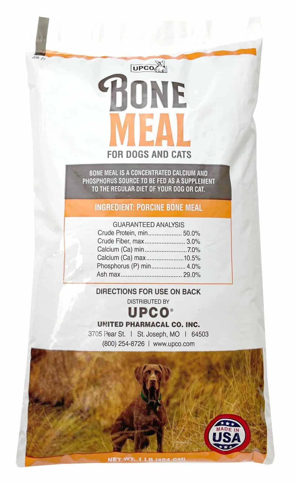 UPCO’s Bone Meal For Dogs & Cats can be fed during pregnancy to promote proper development of offspring and proper bone growth in growing animals. Comes in 1lb Packages. UPCO’s Bone Meal is Steamed, a natural source of calcium, phosphorus, and essential minerals for nursing bitches and fast growing puppies. Add 1/2 tsp to daily ration.