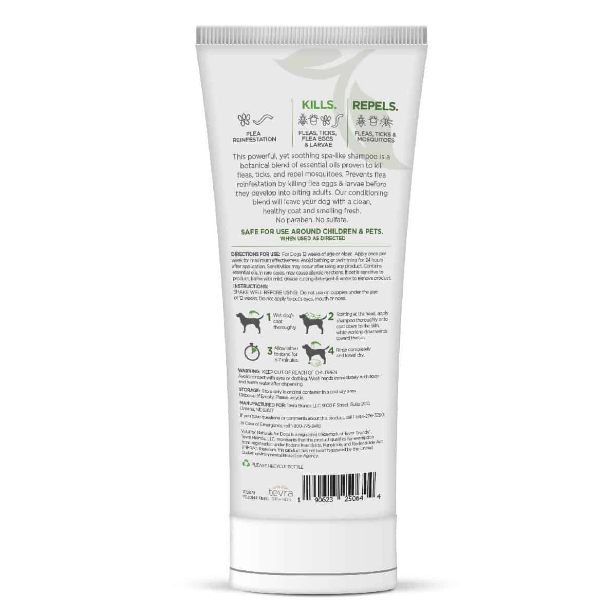 This powerful, yet soothing spa-like shampoo is a botanical blend of essential oils proven to kill fleas, ticks, and repel mosquitoes. Prevents flea re-infestation by killing flea eggs & larvae before they develop into biting adults. Our conditioning blend will leave your dog with a clean, healthy coat and smelling fresh. Safe for use around children & pets when used as directed.