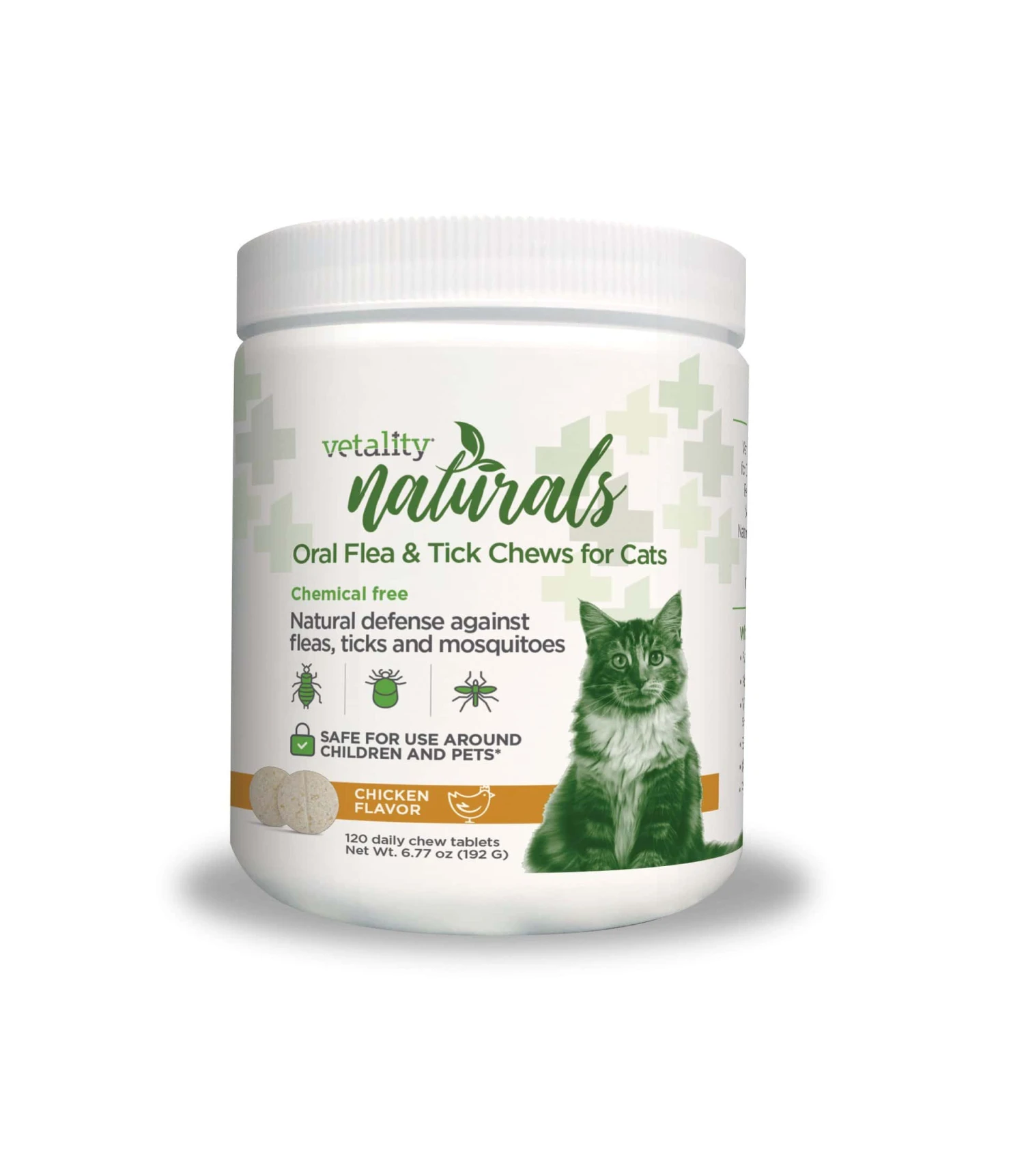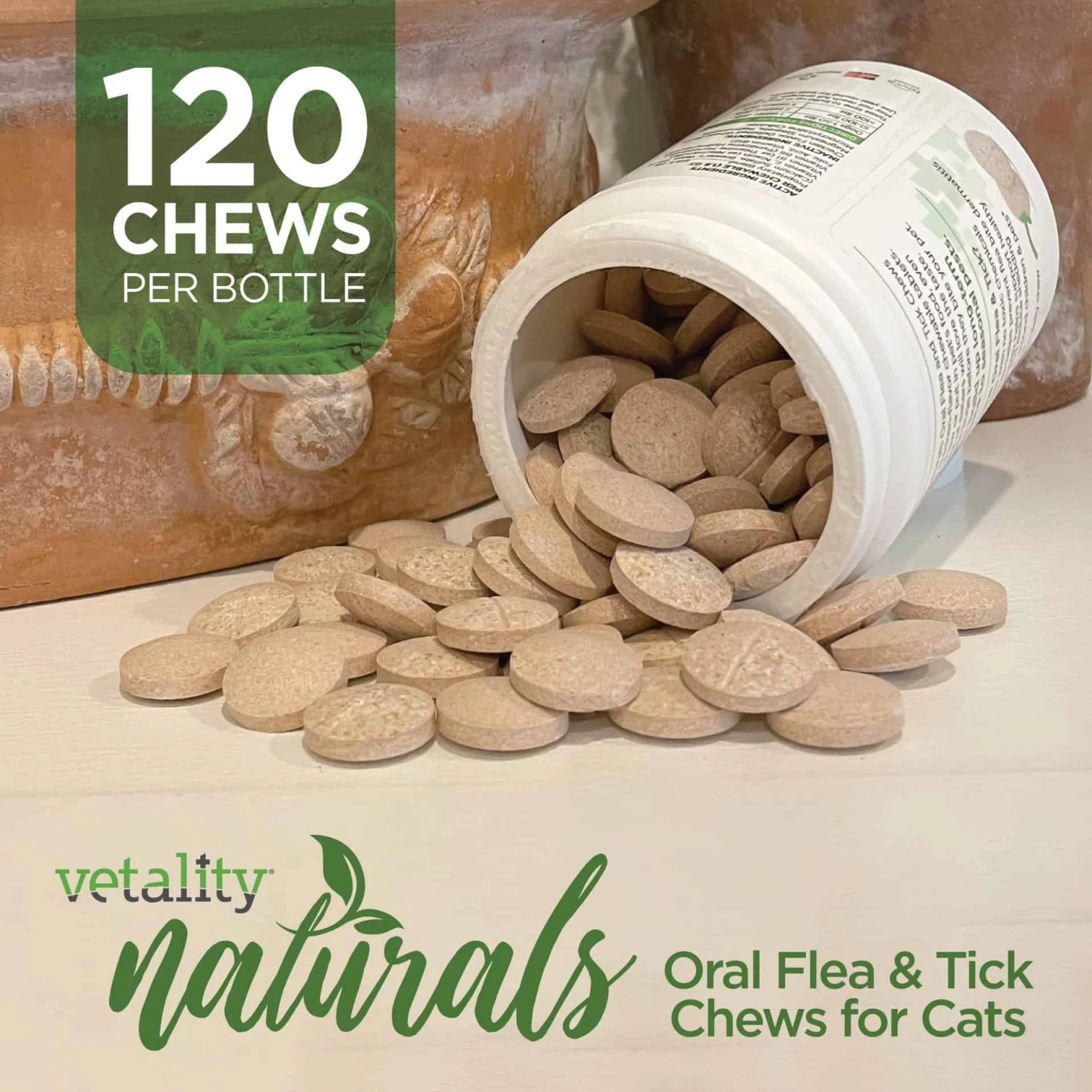 Vetality Naturals Flea & Tick daily oral chews naturally repels fleas, ticks & mosquitoes BEFORE they bite. Proprietary blend of natural ingredients masks the smell of CO2 that attracts bugs to bite.