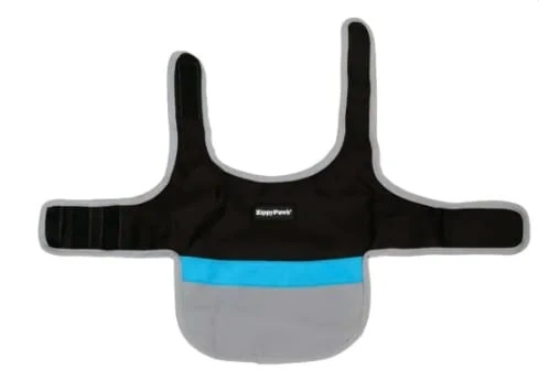 The newly redesigned Adventure Cooling Vest is a lightweight cooling vest made for dogs on the go, helping to keep them cool on outdoor adventures! The vibrant color detail and reflective material also helps keep them visible on walks – especially in low-light conditions. Constructed from durable ripstop fabric, the stylish redesign features two secure points of closure at the stomach and chest. Long-lasting cooling polymer crystals, which are sewn directly into the vest, absorb water and slowly evaporate to help keep dogs cool for up to 9 hours. To activate cooling features, simply soak vest in water for 5 minutes before use. Squeeze out excess water. For maximum cooling, soak in ice water before use. Lay flat to dry, do not wring.