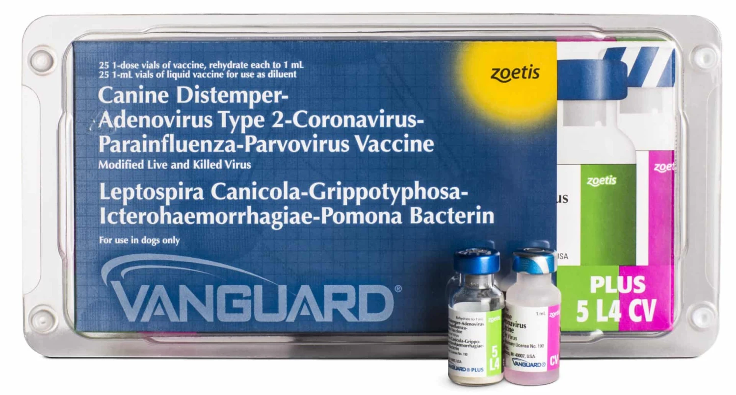 For vaccination of healthy dogs 6 weeks of age or older as an aid in preventing canine distemper caused by canine distemper (CD) virus, infectious canine hepatitis (ICH) caused by canine adenovirus type 1 (CAV-1), respiratory disease caused by canine adenovirus type 2 (CAV-2), canine parainfluenza caused by canine parainfluenza (CPI) virus, enteritis caused by canine coronavirus (CCV) and canine parvovirus (CPV), and leptospirosis caused by Leptospira canicola, L. grippotyphosa, L. icterohaemorrhagiae, and L. pomona.